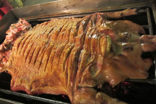這是上星期團體客人預訂的烤山豬消夜大餐,
